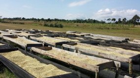 Farmers selectively handpick cherry and deliver it to Ilomba Factory. At intake, cherry is visually sorted and pulped in an eco-pulper. Coffee is wet fermented and then washed in clean water. Parchment is dried on raised beds. Workers rake parchment frequently to ensure even drying. It takes approximately 14 days for parchment to dry.